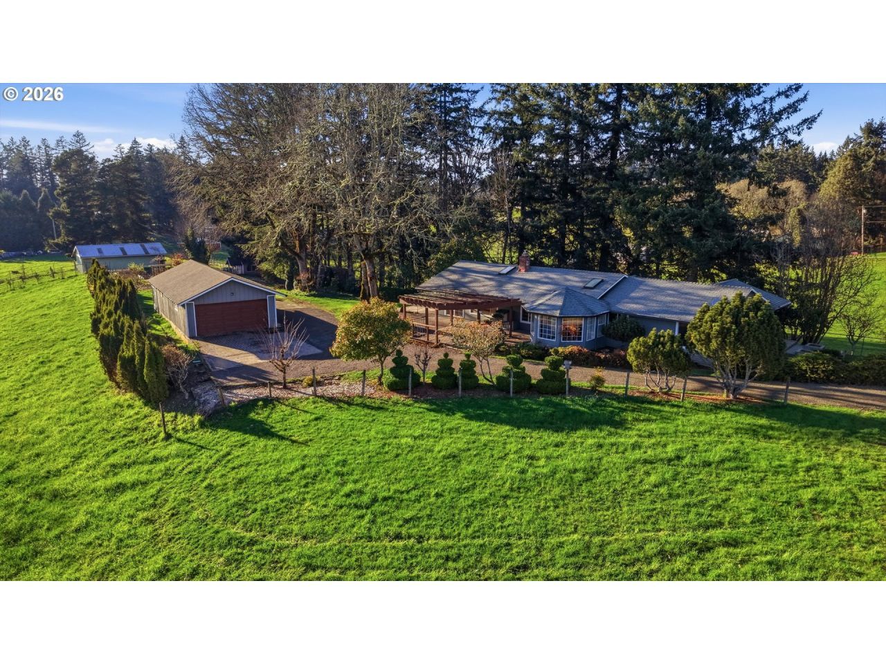 Very rare affordable home in Helvetia on paved road. One level with 3 beds and 3 baths, detached 4 car garage, detached art studio or craft room, 3 stall barn/pole building, play house, pasture, trees, territorial views, garden, fruit trees, and grapes. The home is privately tucked away from the road on a knoll with good sun exposure and full fenced property with a gate. Home has been nicely upgraded throughout the years including newer baths with heated floors, slab granite in the kitchen and vinyl windows. Brick fireplace has had a propane stove added for ambience and easy heating. 3rd bedroom comes with built-in Murphy Bed. Come see this one while it lasts. Call with questions.