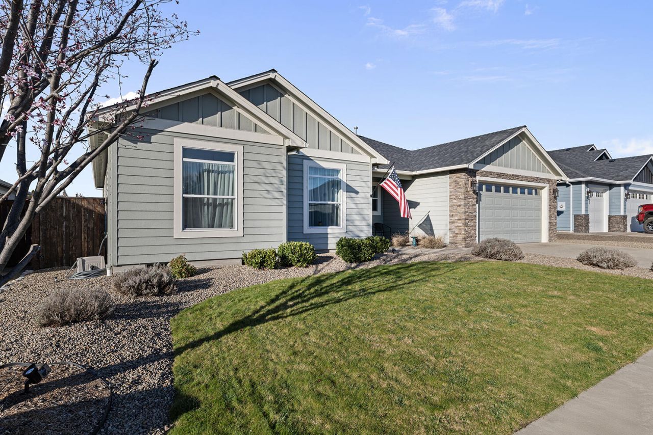 Custom 3-bed, 2-bath Craftsman-style single-level by Brian Magel Construction on a spacious lot just a short stroll from the 4th hole of Eagle Point Golf Course. The bright great room welcomes you with a cozy gas fireplace and an open kitchen featuring granite counters, custom cabinetry, and an island eat-in bar, perfect for gathering. The primary suite offers dual sinks, a soaking tub, separate shower, and a generous walk-in closet. Thoughtful upgrades include tongue-and-groove plank flooring, tiled master shower, and tile floors in baths and laundry. Enjoy slow mornings or evening BBQs on the covered back patio overlooking the extra-deep backyard. Finished 3-car tandem garage, landscaping, and fencing included. Move-in ready and easy to fall in love with.