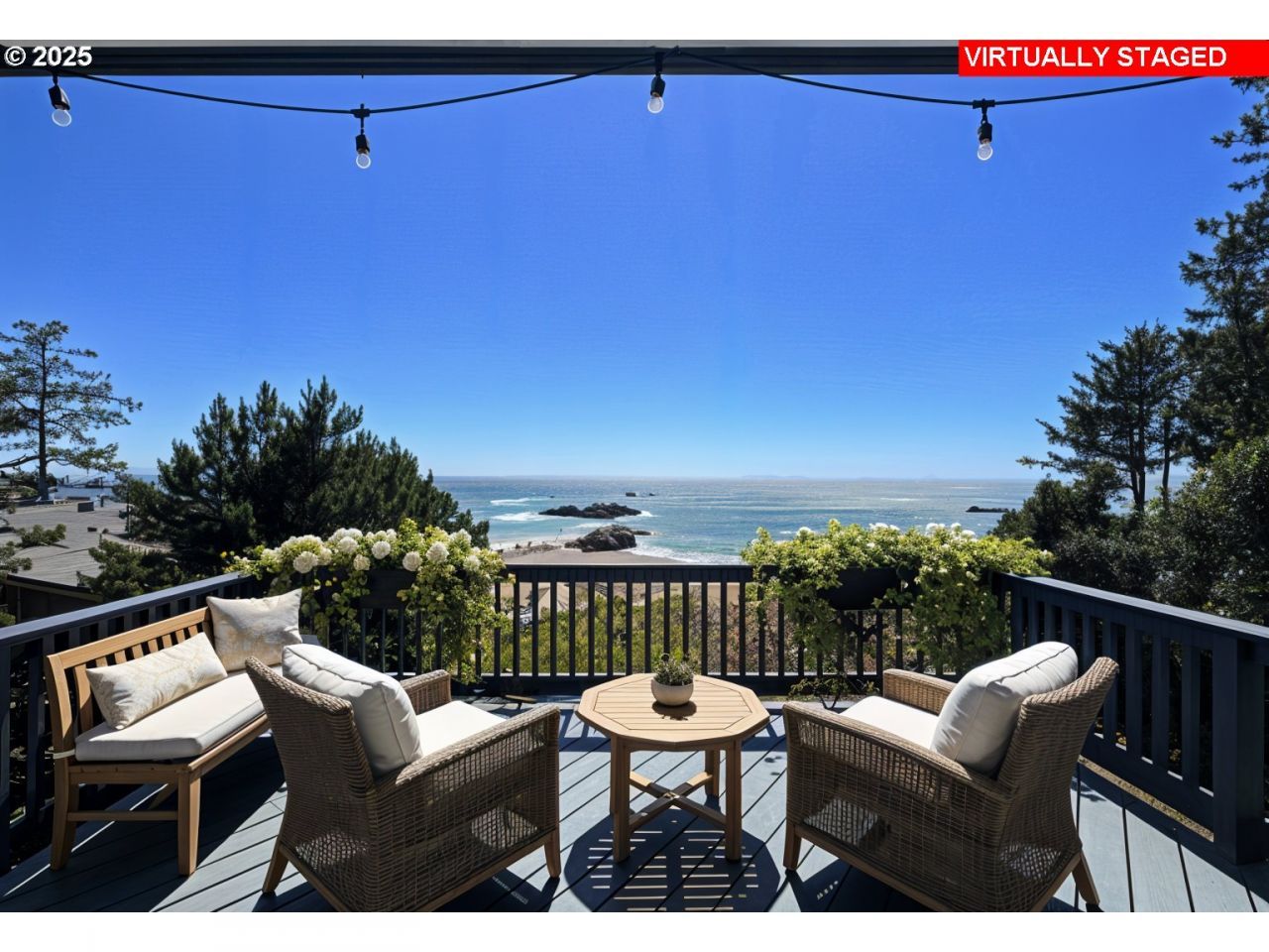 OCEANVIEW COASTAL DREAM - 2-Minute Walk to the Beach! Wake up to unobstructed views of the Pacific and spend your days with the sand just steps from your door. This rare 4-bed, 4-bath coastal gem offers private beach access, luxury living, and the perfect blend of peace + convenience. With the sand and surf so close, every day feels like a retreat.This beautifully designed home includes a few tasteful nods to Norwegian ship design and is all about comfort, light, and connection to the coast. Windows frame ocean vistas, bringing the beauty of the shoreline into the main living area and bedrooms. Warm wood finishes create a welcoming and serene atmosphere throughout.Natural light pours from the floor to ceiling windows in the open-concept living, dining, and kitchen, providing an ideal setting for gatherings, with seamless flow to the expansive main deck-perfect for outdoor dining, entertaining, or simply relaxing while watching the waves roll in. From the upstairs bedrooms, walk out to the upper deck where sweeping ocean views await. Each of the four-bedroom suites includes its own private bathroom, making hosting family and friends effortless. An elevator connects the main living level to the upper floor for easy access, and a hidden outdoor sink/wet bar adds a fun surprise for those who love to entertain. Recent upgrades include a newer roof, fresh exterior and interior paint, and new flooring throughout, ensuring a move-in-ready experience. The lower level offers generous storage space along with a deep 3-car garage and bonus room, providing room for vehicles, toys, and coastal gear.Located in a quiet gated community surrounded by lush landscaping, this home feels worlds away while still being just a short drive to Brookings' charming downtown shops and restaurants.If you've been dreaming of a home where every day feels like a vacation... THIS. IS. IT. Be sure to watch the TO THE BEACH Video.