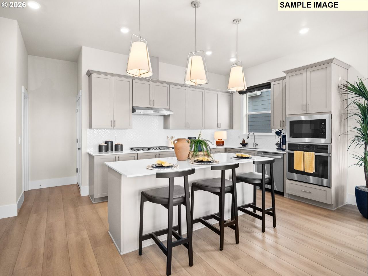 Move-in-ready! Look at this elevated frontage on this home. Sit on the front porch savoring the Southern exposure. Kingston Terrace, a community designed toward connection and convenience, with acres of planned parks, walking trails, and neighborhood future retail. This versatile 4-bedroom Ladd floorplan offers a Farmhouse Exterior with a covered front porch, designed for comfort and modern living. Enjoy Keyless entry, Deako Switch Backplates, and Cat 6 Wiring. The main level features impressive 10-ft ceilings on the first floor, and 9ft ceilings on 2nd floor, 7.5 Baseboards throughout, and more than expected windows. This is an open-concept layout centered around a spacious kitchen with quartz countertops, 36 Built-in Gas Cooktop with Hood Vent, a large island, and plentiful cabinetry. Look at the amount of cupboard space & pantry! A cozy gas fireplace anchors the inviting great room, perfect for gatherings. Upstairs, the primary suite offers a relaxing retreat complete with a generous walk-in closet and an en-suite bath featuring double sinks & a frameless shower! See photo. The other 3 bedrooms to use as you see fit. This home has a dedicated laundry room on the 2nd floor. You can utilize a spacious two-car garage and a tankless water heater are a couple of the thoughtful designs throughout, this home blends style, functionality, and everyday ease. Tankless water heater! Large nature preserve to the South. Kingston Terrace where functionality and serenity meet.