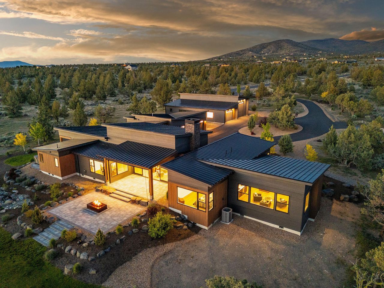 Breathtaking Cascade Mountain views frame this stunning modern home featuring soaring ceilings, a dramatic floor-to-ceiling stone wall surrounding the sleek modern fireplace, and expansive sliding glass doors that open to an outdoor living patio with custom fire pit. The chefs kitchen offers a large quartz island, high-end stainless range, custom cabinetry, and designer lighting, seamlessly flowing into the dining and great room--perfect for entertaining. The versatile bonus room is ideal for entertaining or relaxing, featuring a stylish wet bar that makes hosting effortless--perfect for movie nights, game days, or a private lounge. Two well-appointed guest bedrooms each offer their own ensuite bath, providing comfort and privacy. Thoughtful finishes, warm wood floors, and indoor-outdoor living create a refined yet inviting retreat in a spectacular setting.