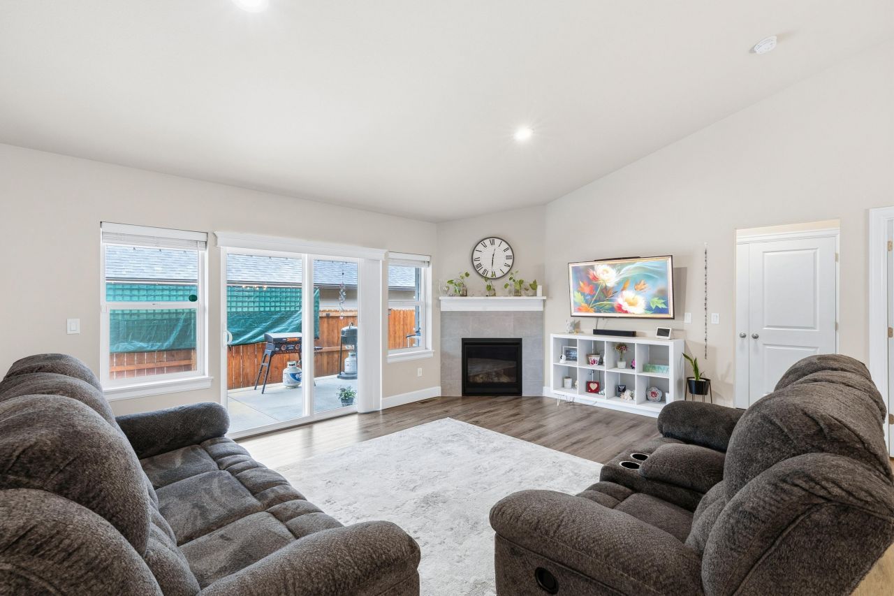 Built in 2020 and impeccably maintained, this single-level home offers vaulted ceilings, an open-concept layout, and the clean, modern finishes buyers are looking for. The living area features a cozy gas fireplace, while the kitchen includes quartz countertops, a generous walk-in pantry, and great connection to the main living and dining spaces. The primary suite offers a quiet retreat, and thoughtful extras include an expansive entry and overhead garage storage. Outside, enjoy a fully fenced yard and covered, lighted patio that make the home easy to enjoy year-round. The asphalt driveway adds flexibility, with possible space for future RV parking. Located in Hawley Estates near Cline Falls, with convenient access to Redmond amenities and Sisters just 20 minutes away, this spotless home shows clear pride of ownership throughout.