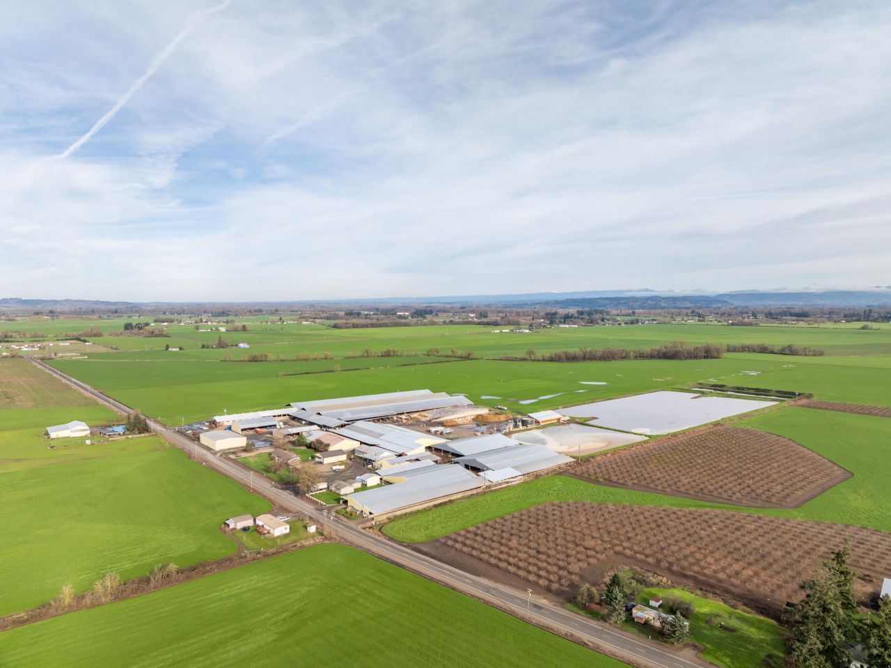 295± acre free-stall dairy located just outside Albany, Oregon with excellent I-5 access. The operation includes 256 tillable acres and over 350,000 sq. ft. of quality-built, well-maintained outbuildings, including two residences. Permitted for a 3,045-head CAFO, with an ideal operating capacity of approximately 1,500 milking cows, designed for a full-cycle breeding program. Productive soils and established water rights support long-term efficiency. Great cow-flow and opportunities for scalability.