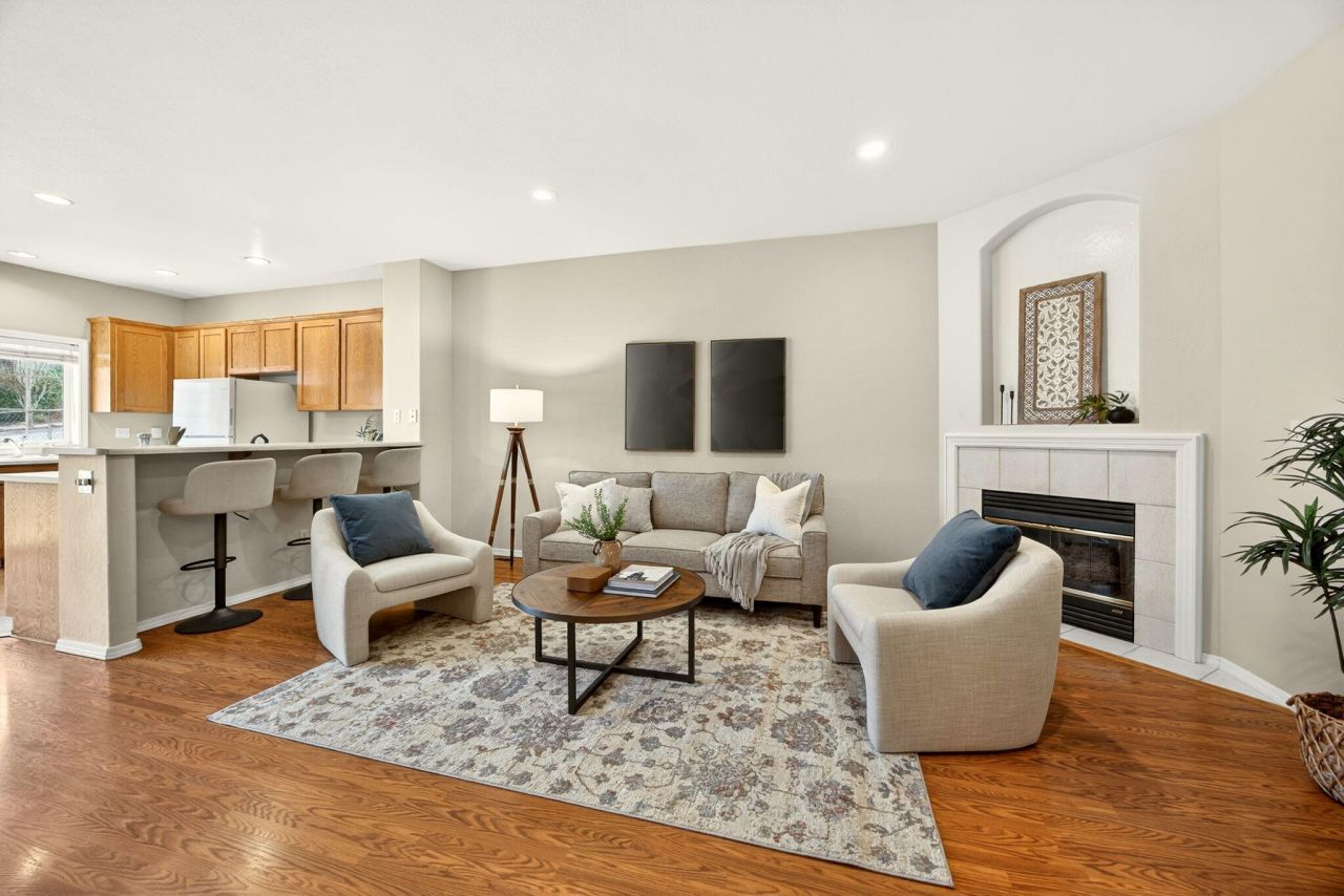 Wonderful townhome located just a block from North Mountain Park. This charming three-bedroom, 2.5-bathroom home is turnkey and offers simple living. A dedicated entry welcomes you home and leads to the open floor plan with a spacious living room with a gas fireplace. The kitchen is filled with natural light and has a breakfast bar, perfect for gatherings. The eating area has a large sliding glass door that opens to the back patio, where you can enjoy a running creek and abundant sunshine. Upstairs is the primary suite with a vaulted ceiling, an ensuite bath, and a walk-in closet. Two more bedrooms and a full bath round out the upstairs. The attached garage adds to the ease of living. All of this is just a short jaunt to the popular North Mountain Park with playing fields, wildlife habitat areas, playgrounds, and picnic areas. Minutes from downtown, you simply cant beat this home. See extra notes on potential Seller financing.
