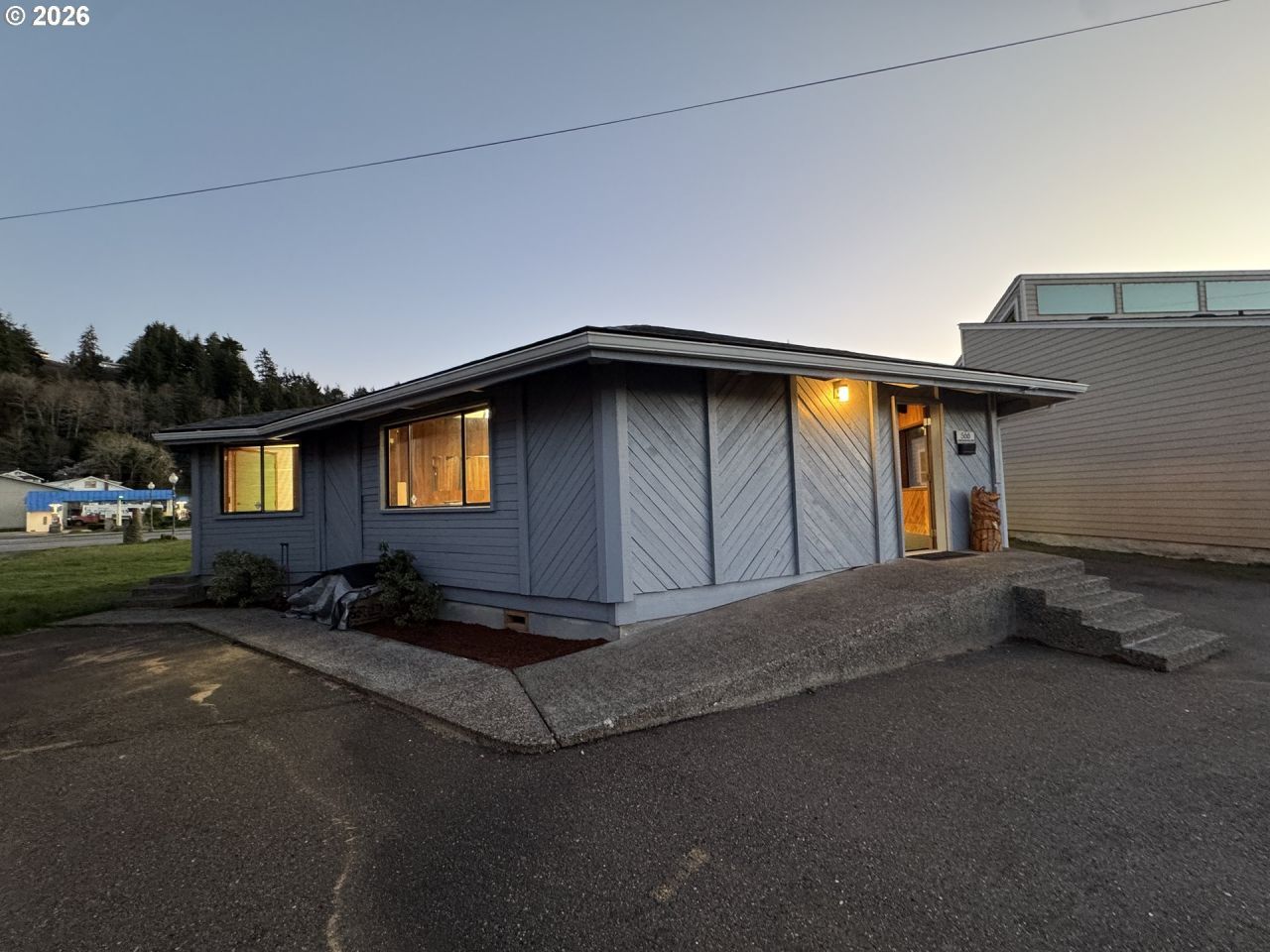 A very unique bldg zoned Commercial mixed use allowing a Live/Work opportunity located within the new Reedsport Main Street urban district renewal development zone filled with charming restaurants, Brewery, art gallery and shopping all within walking distance. Featuring beautiful vaulted ceilings, custom cedar interior, two separate large front areas, two private offices, storage room, bathroom and kitchenette. Over 20k in recent renovations which includes complete exterior and interior refinish work with 3 coats of BEHR paint, new HVAC upgrades, fixtures and sink, insulation upgrades, New 30 year roof in 2024. Major electrical upgrades including new panel with 200amp service and multiple 220V outlets throughout matched with an open functional layout. Property also may qualify for large matching grants and incentives thru the city of Reedsport urban renewal district fund. Buyer to do their own due diligence on use and grant money available. This one of a kind property is priced to sell.